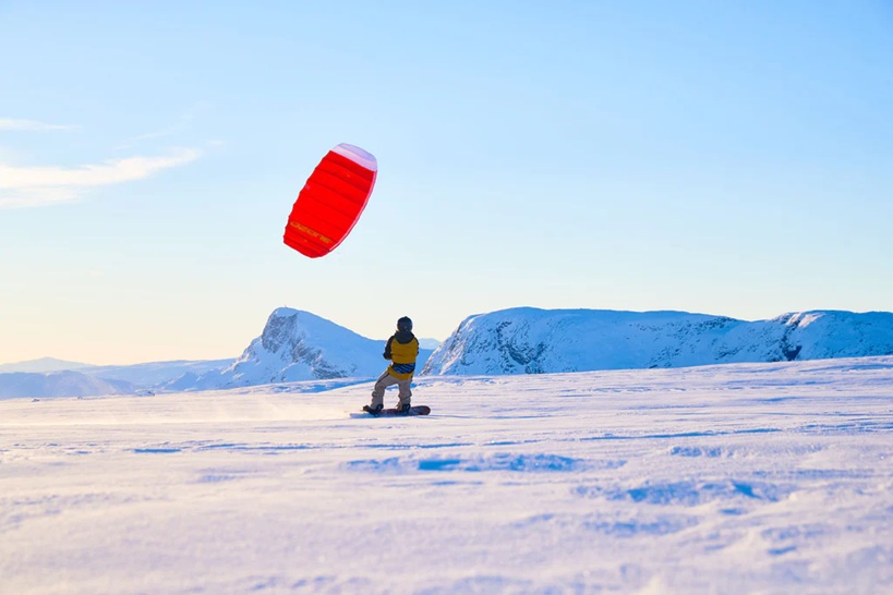 Här märker de flesta hur kraftfull även en liten kite kan vara på snö. Börja försiktigt: