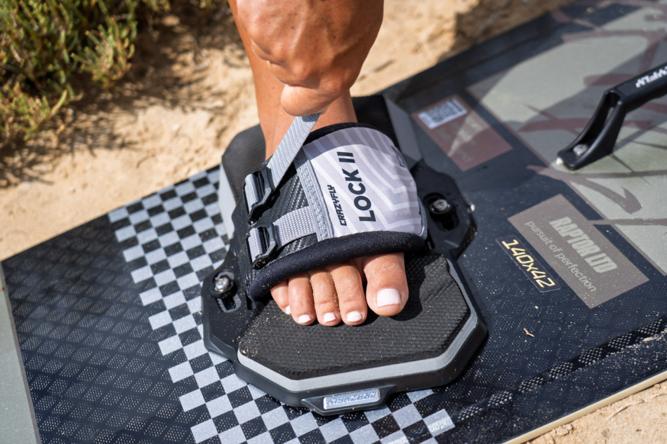 Fotstrapsen är nu utrustade med vår innovativa konstruktion utan kardborre. Utan kardborre kan fotstrapsen aldrig öppna sig oavsiktligt och får dessutom en betydligt längre livslängd. Lock II-fotstrapsen är mer flexibla och ger en åtsittande och greppsäker passform. För maximal support och bästa möjliga kontakt mellan åkare och bräda finns fyra förstärkningar i fotstrapsen – två på varje sida av foten – vilket ger överlägset sidostöd. Justering av strapstorlek kan enkelt göras under åkning. Lock II-fotstrapsen har ett stort justeringsspann och kan användas bekvämt även med neoprenskor. När storleken justeras rör sig fotstrapsen upp och ner på fotens insida, medan utsidan är fixerad, vilket eliminerar glapp. Detta ökar komforten, förbättrar fotstödet och minskar risken för skador. Fotstrapsens position kan även justeras framåt och bakåt för en mer personlig passform.