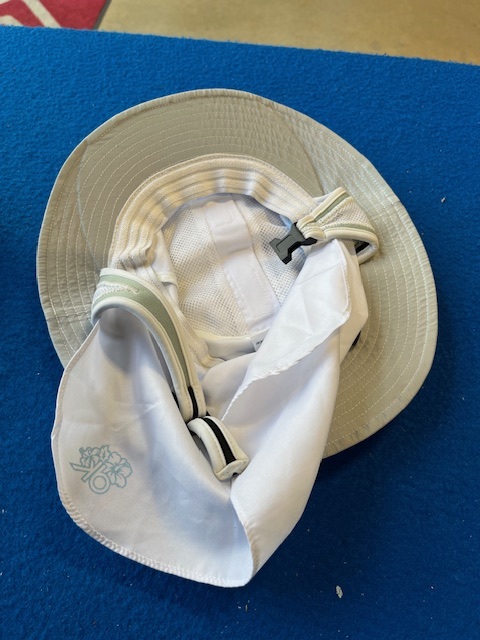 Hattarna har blivit lite smutsiga vid förvaring på lager. Sitter spänne och extra solskydd på hatten, se minibild.