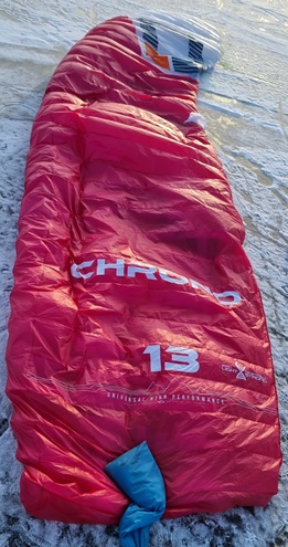 Chrono V5 använder ett lätt, lufttätt och slitstarkt dubbel ripstop-material på både över- och undersida. Den vattenavvisande beläggningen förbättrar flygegenskaperna och underlättar vattenstart. Förfinade luftintag i framkanten ger effektivare inflation, bättre tätning och optimerad placering för jämnt internt lufttryck. Detta förbättrar både land- och vattenåterstart och ger en smidig återhämtning i alla situationer.