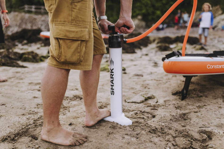 Pumpen har en lätt design, extremt lågt pumpmotstånd och en tryckmätare. Envägs- och dubbelpumpsväxling samt ett tömningsalternativ. Shark vill inte att du ska lägga tid på att pumpa utan vill få dig att paddla istället.
