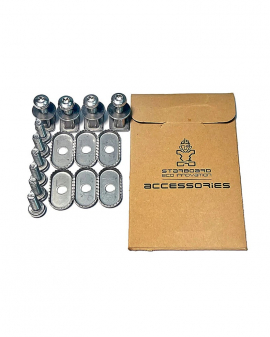Detta set innehåller skruvar mm du behöver för att montera en starboard Foil med kolfibermast på en uppblåsbar bräda. Det är vanliga M6 skruvar, skillnaden är att de är korta så de ej sticker upp ovan brädan och muttern är extra djup så den greppar extra bra. - Leverans och frakt