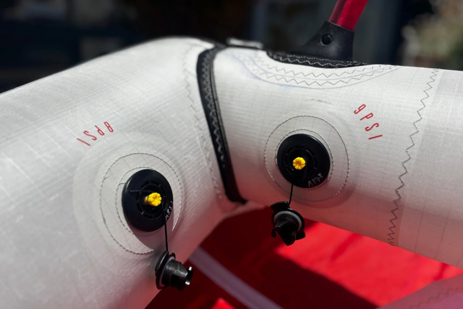 Användarvänliga maxflödesventiler gör upp- och urluftning enkel. Separata ventiler för strut och leading edge gör det möjligt att justera trycket individuellt för optimal prestanda och anpassning vid olika förhållanden och discipliner.