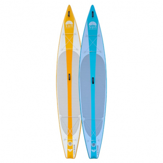 SUN 12.6 Wave är en snabb, stabil och lättmanövrerad touring-SUP, perfekt för motionspaddling, längre turer och SUP-yoga. Med sin spetsiga design skär den effektivt genom vattnet och ger bättre glid och kursstabilitet än rundare allround-SUP:ar.