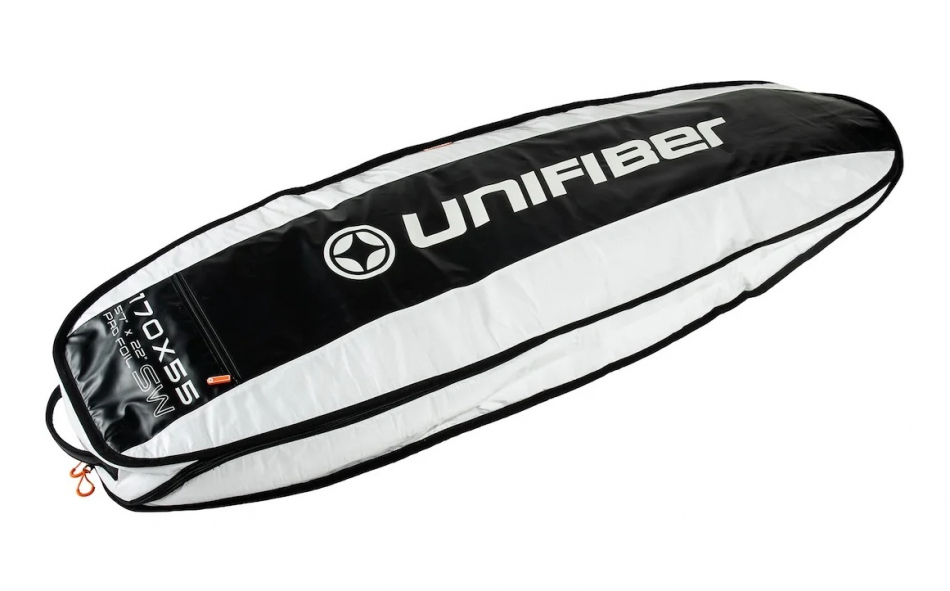 Med 12 cm sidovägg och 10 mm vaddering får brädan ett säkert skydd, även runt tjockare rails. Den smarta fenslot-lösningen gör att du kan förvara brädan med foilen monterad. En separat ficka med dragkedja håller skruvar och verktyg nära till hands.